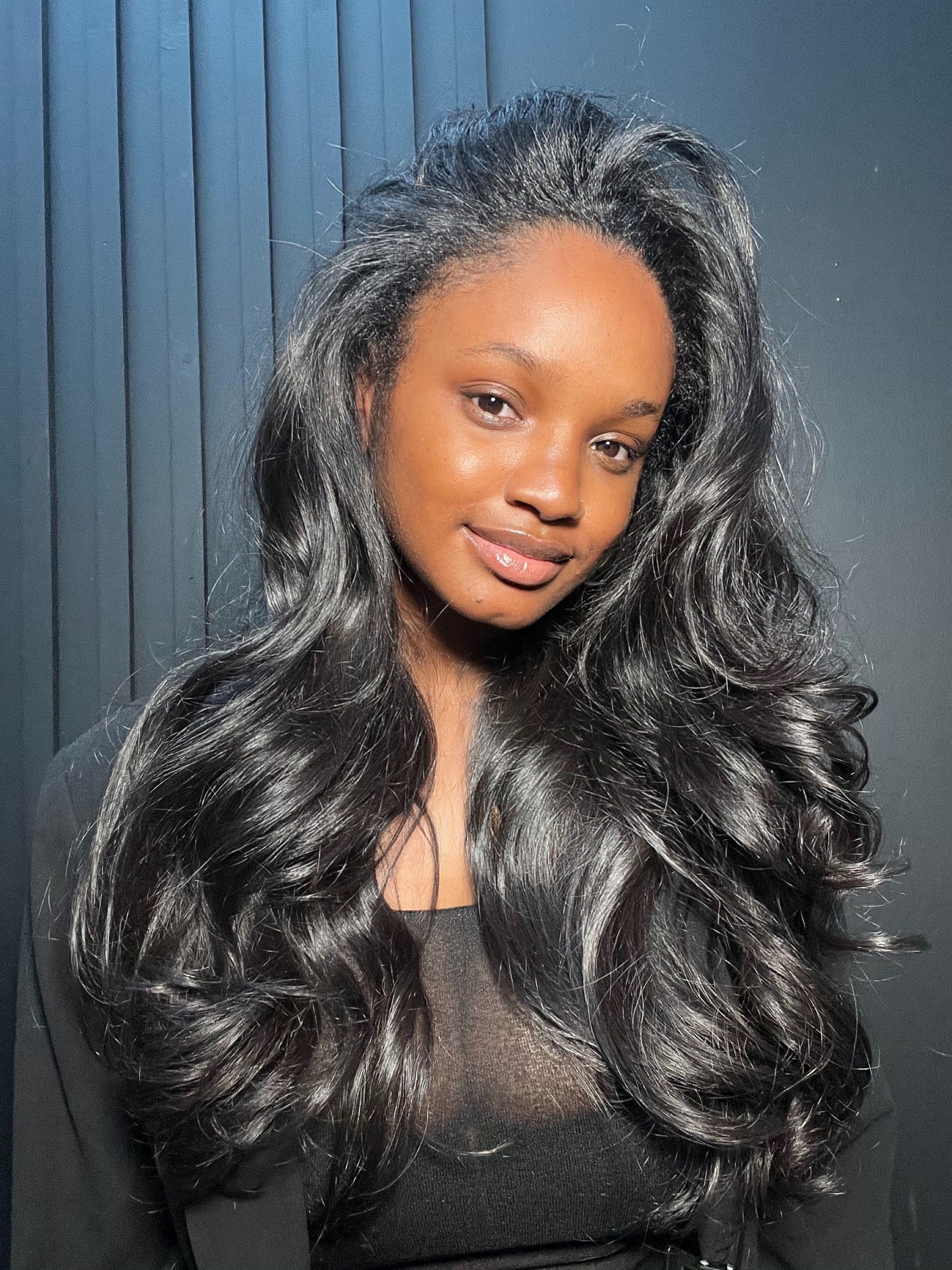 Crafted with 100% raw single-donor Indian hair, this Flip-over Unit offers effortless luxury and natural fullness. Designed for convenience and versatility. No lace, no glue- simply flip, blend, and go.